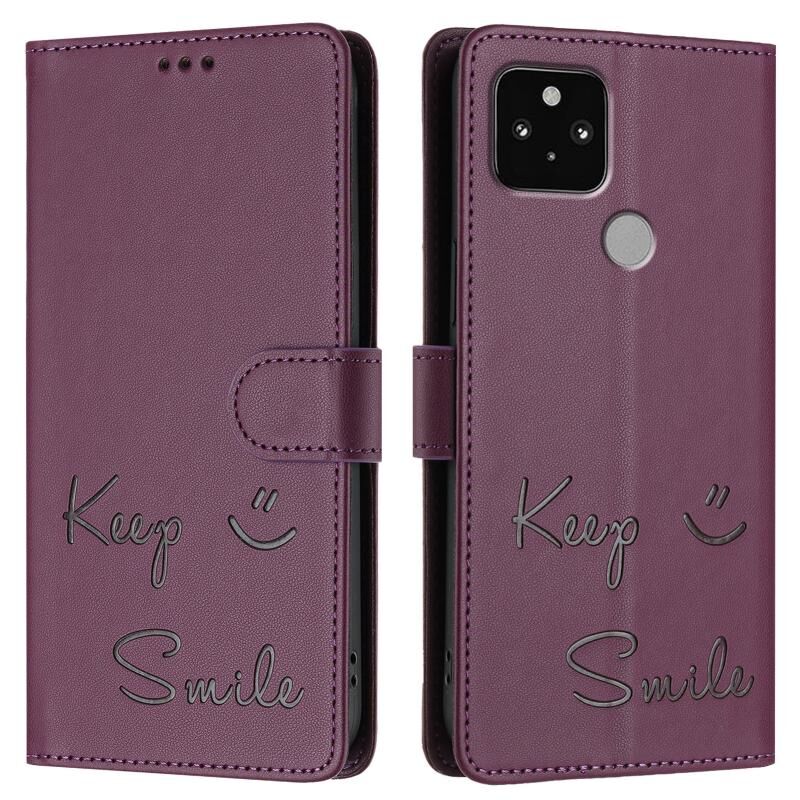 Για το Google Pixel 5 Smile ανάγλυφο RFID δερμάτινη θήκη τηλεφώνου (Violet)
