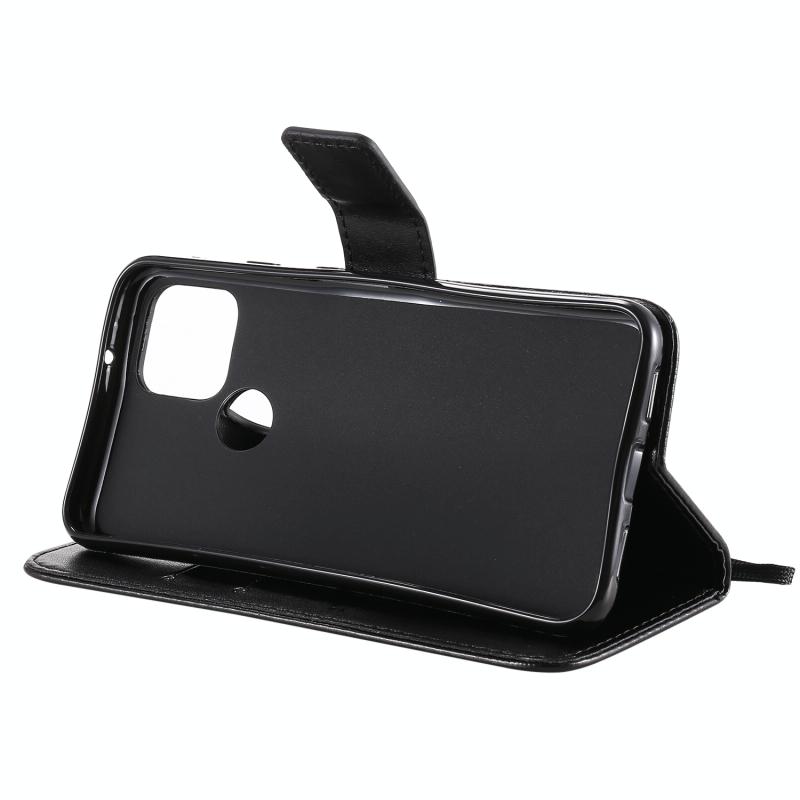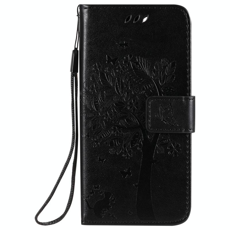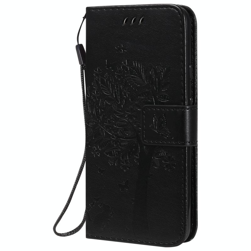 For Google Pixel 5 Tree & Cat Embossed Pattern Horizontal Flip Leather Case with Holder & Card Slots & Wallet & Lanyard(Black)