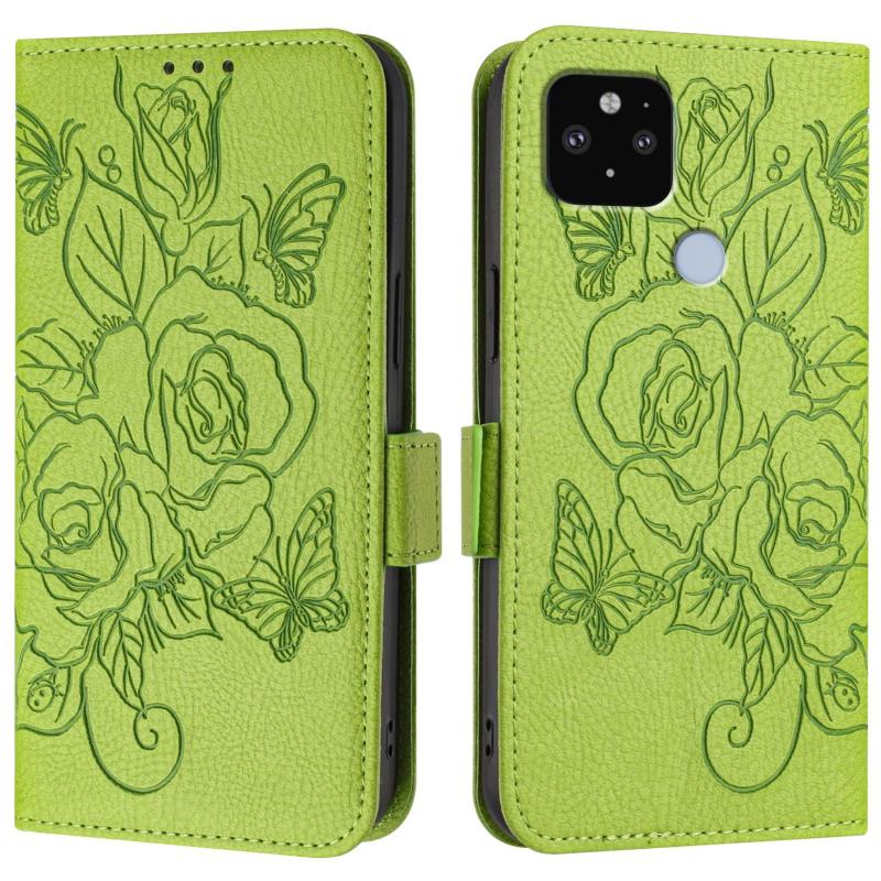 For Google Pixel 5 XL / 4a 5G Embossed Rose RFID Anti-theft Leather Phone Case(Green)