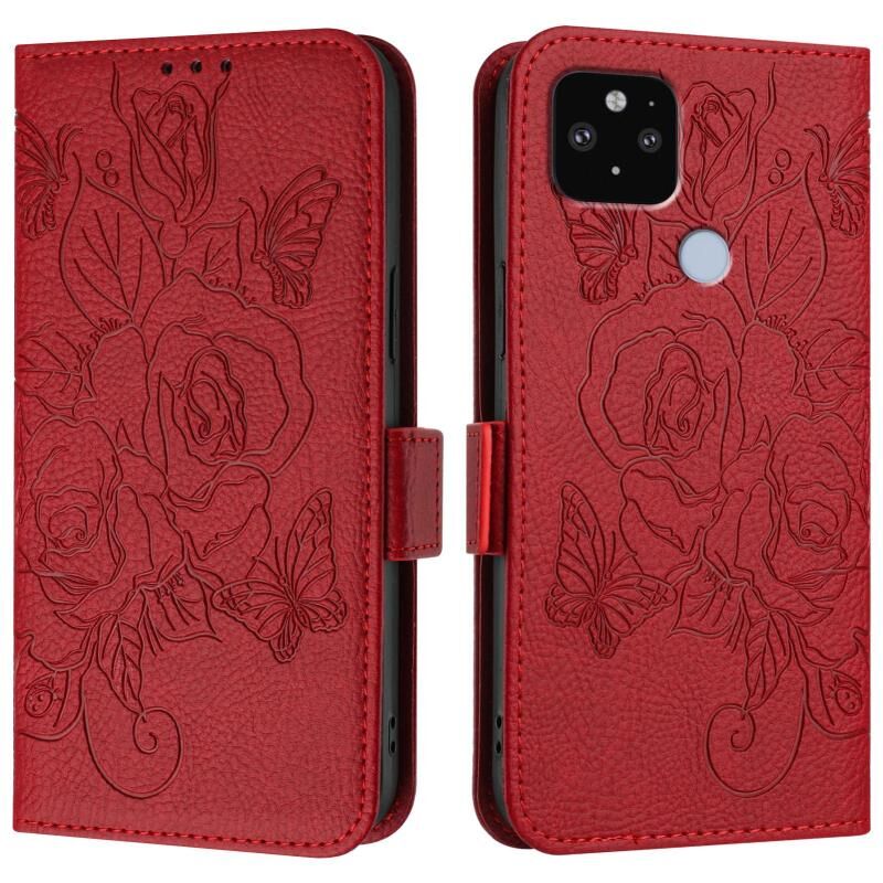 For Google Pixel 5 XL / 4a 5G Embossed Rose RFID Anti-theft Leather Phone Case(Red)