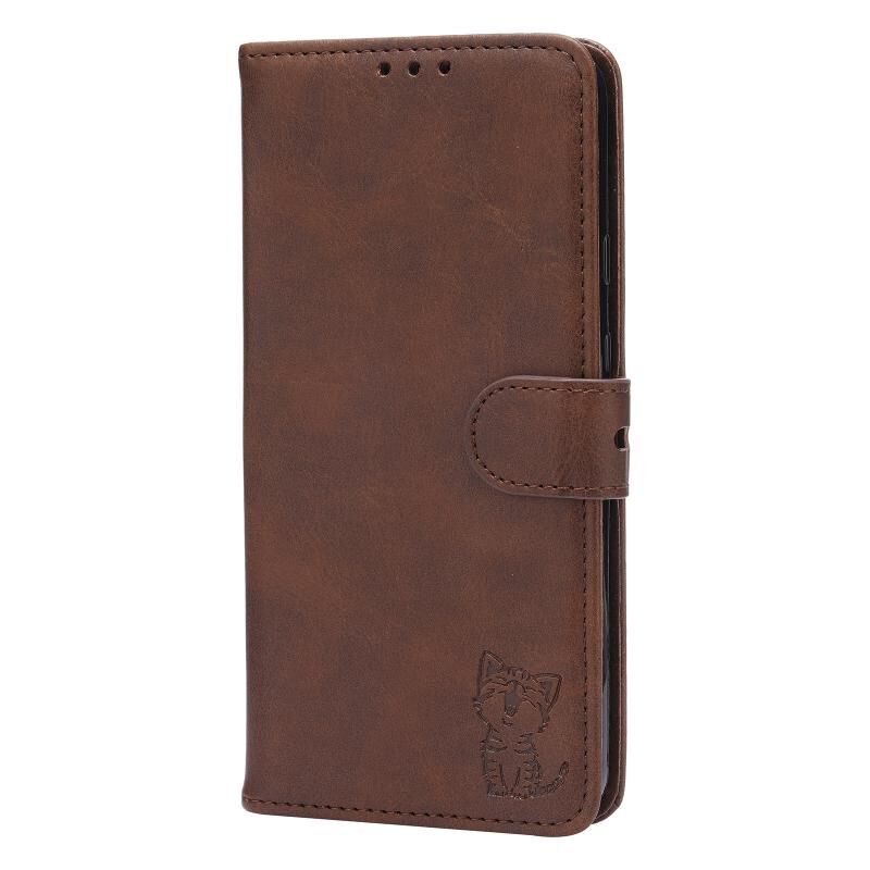 Για το Google Pixel 5 XL ανάγλυφο Happy Cat μοτίβο οριζόντια Flip δερμάτινη θήκη με κάτοχο & υποδοχές για κάρτες & πορτοφόλι (καφέ)