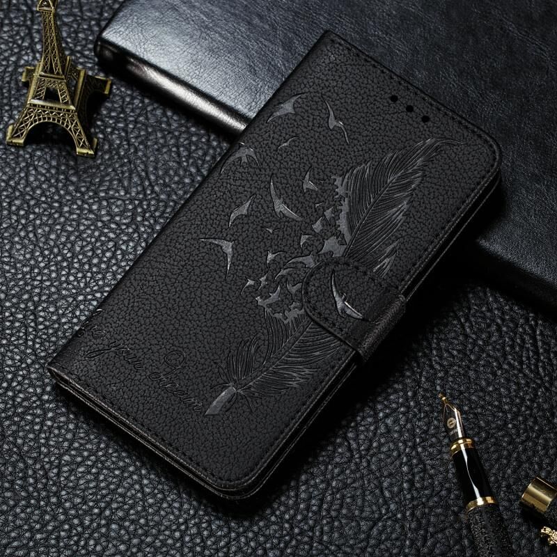 For Google Pixel 5 XL Feather Pattern Litchi Texture Horizontal Flip Leather Case with Wallet & Holder & Card Slots(Black)