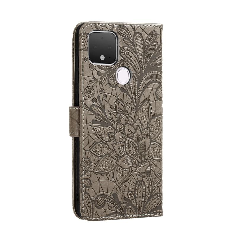For Google Pixel 5 XL Lace Flower Horizontal Flip Leather Case with Holder & Card Slots & Wallet & Photo Frame(Grey)