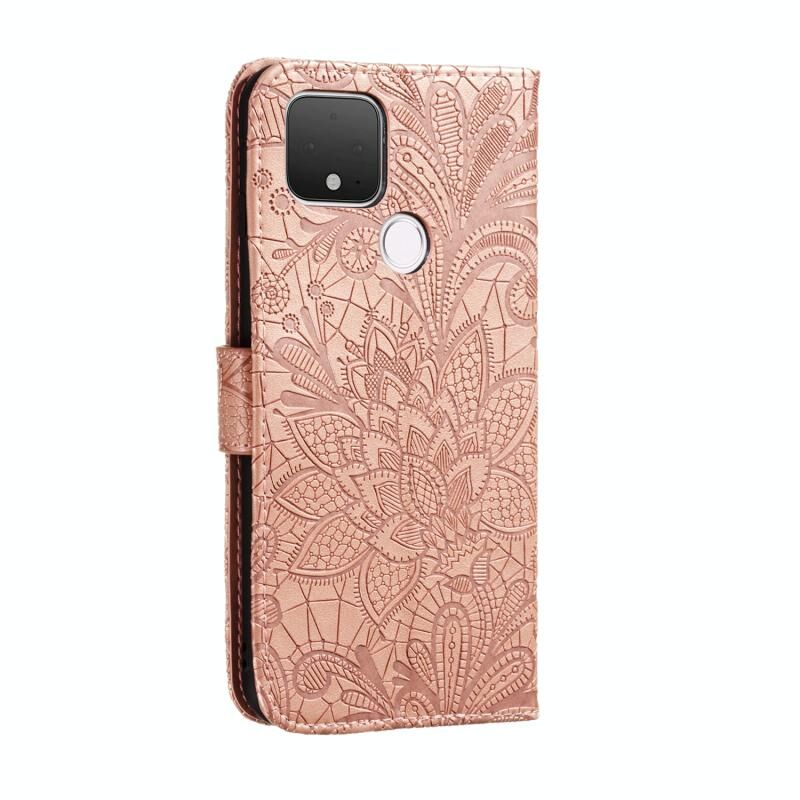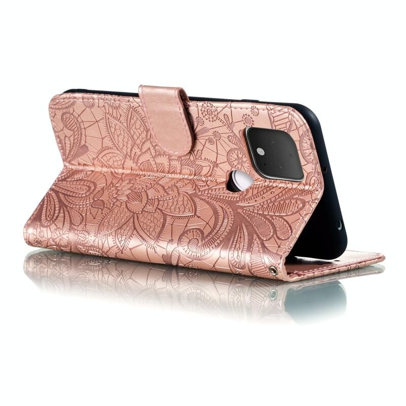 For Google Pixel 5 XL Lace Flower Horizontal Flip Leather Case with Holder & Card Slots & Wallet & Photo Frame(Rose Gold)