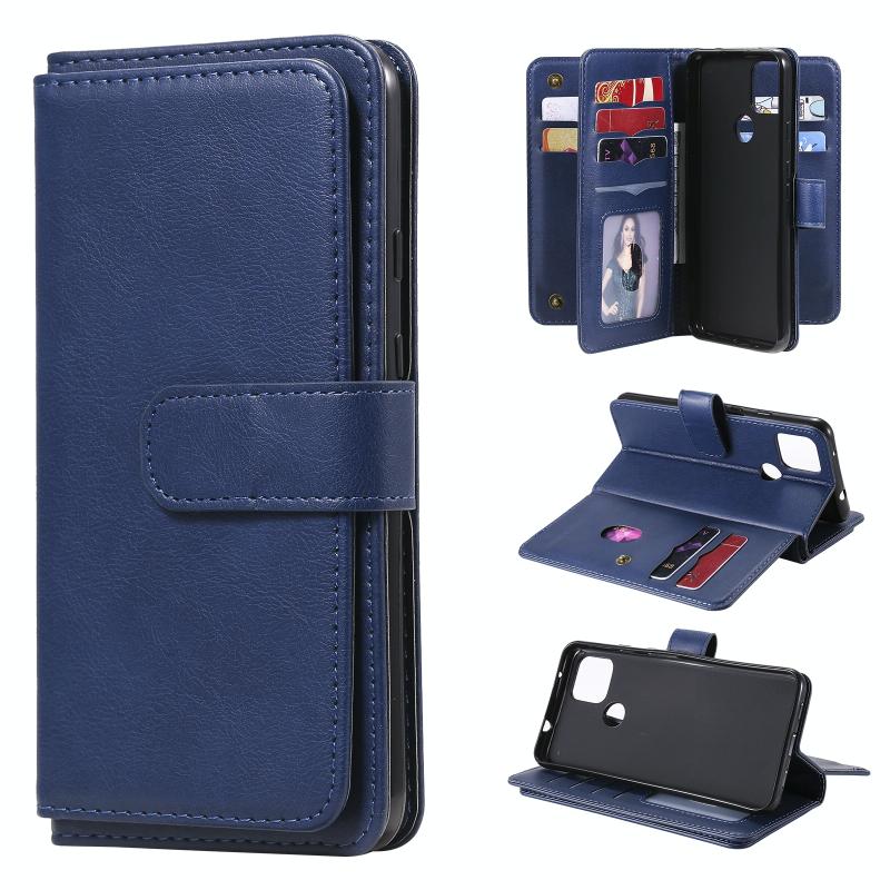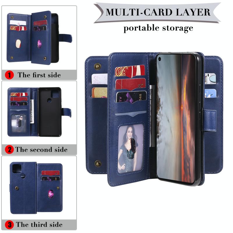 For Google Pixel 5 XL Multifunctional Magnetic Copper Buckle Horizontal Flip Leather Case with Bracket & 10 Card Slots & Wallet & Photo Frame(Dark Blue)