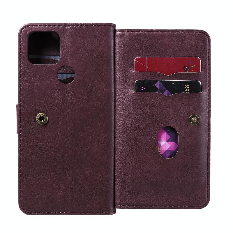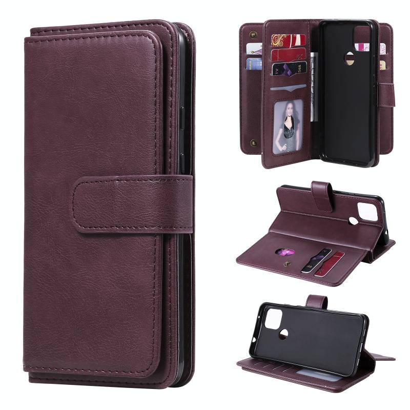 For Google Pixel 5 XL Multifunctional Magnetic Copper Buckle Horizontal Flip Leather Case with Bracket & 10 Card Slots & Wallet & Photo Frame(Wine Red)