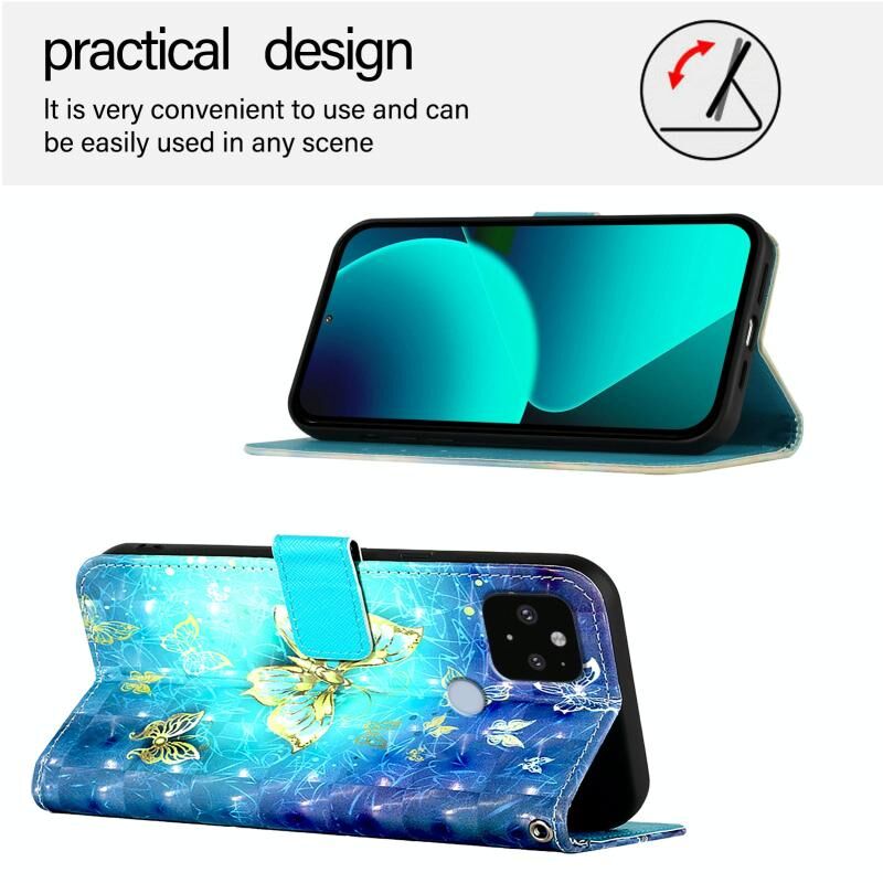 Θήκη τηλεφώνου από δέρμα με οριζόντια αναδίπλωση και τρισδιάστατη ζωγραφική για Google Pixel 5 XL / Pixel 4a (Χρυσή Πεταλούδα)