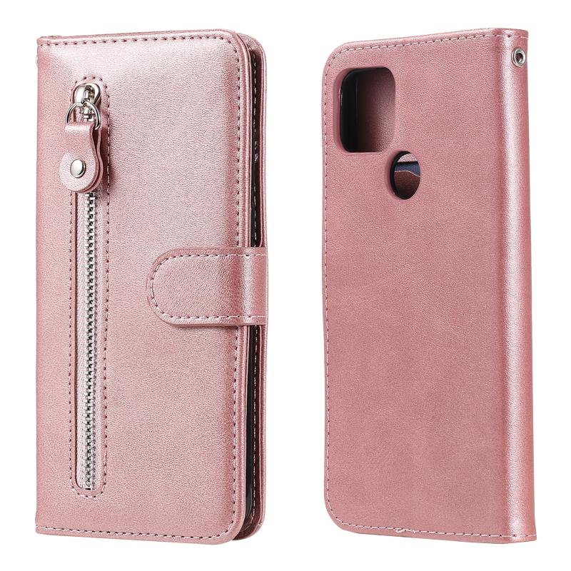 For Google Pixel 5 XL / Pixel 4a 5G Fashion Calf Texture Zipper Horizontal Flip Leather Case with Holder & Card Slots & Wallet(Rose Gold)