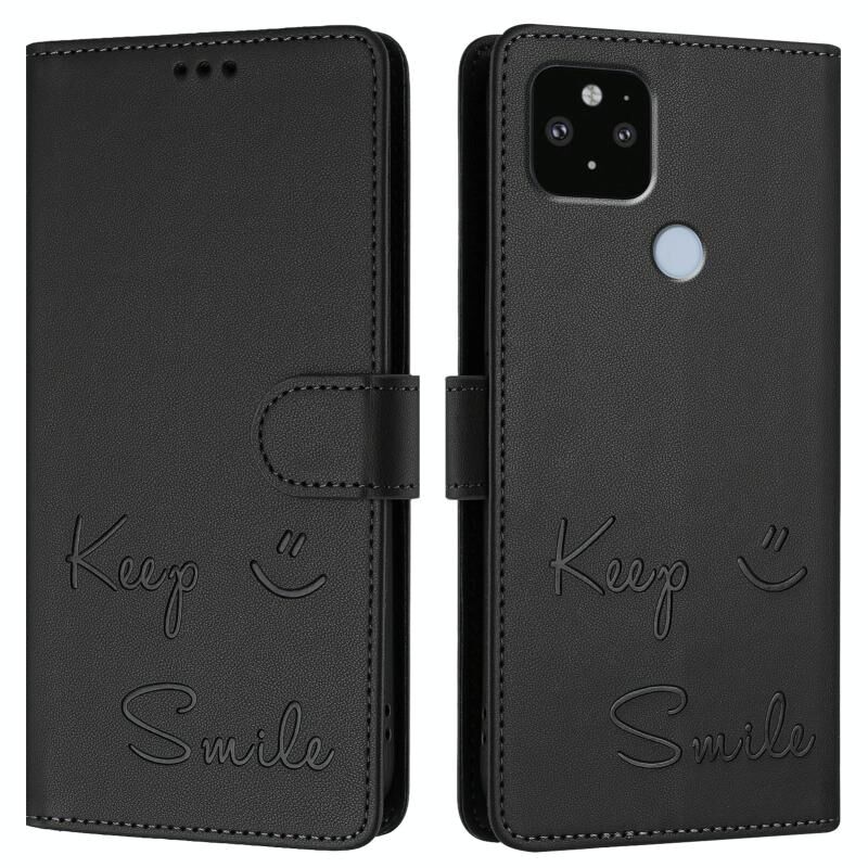 Για το Google Pixel 5 XL / Pixel 4a 5G Smile ανάγλυφη RFID δερμάτινη θήκη τηλεφώνου (Μαύρο)