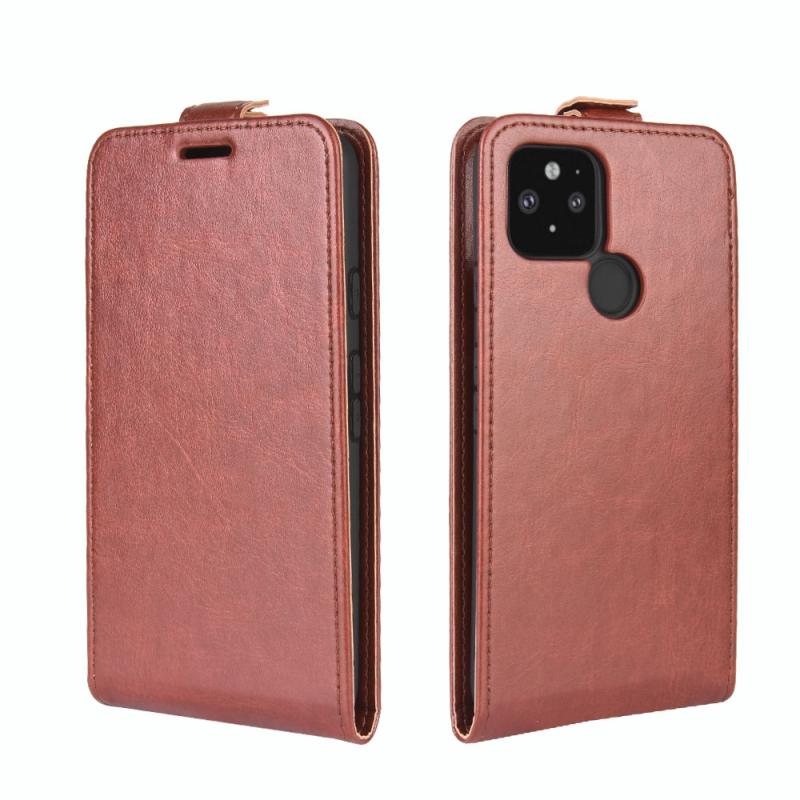 For Google Pixel 5 XL R64 Texture Single Vertical Flip Leather Protective Case with Card Slots & Photo Frame(Brown)
