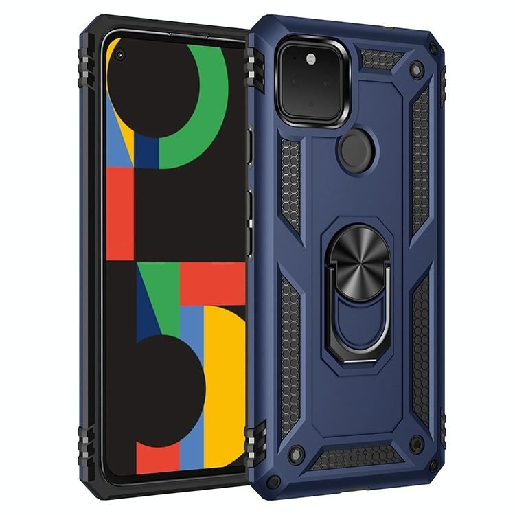 For Google Pixel 5 XL Shockproof TPU + PC Protective Case with 360 Degree Rotating Holder(Blue)