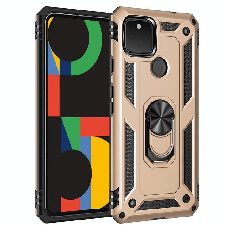 For Google Pixel 5 XL Shockproof TPU + PC Protective Case with 360 Degree Rotating Holder(Gold)