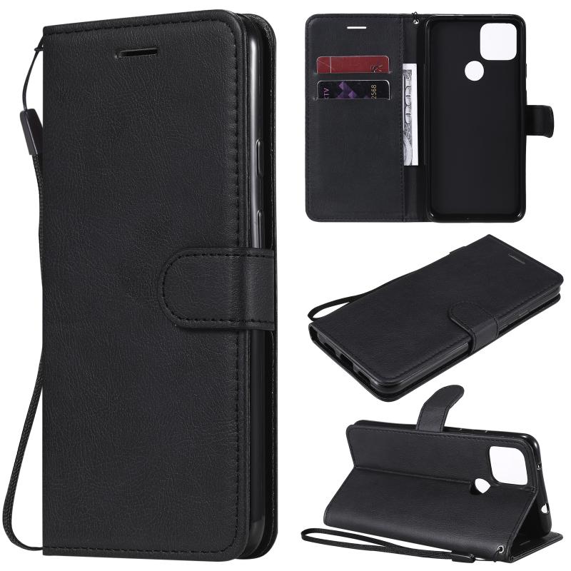 For Google Pixel 5 XL Solid Color Horizontal Flip Protective Leather Case with Holder & Card Slots & Wallet & Photo Frame & Lanyard(Black)