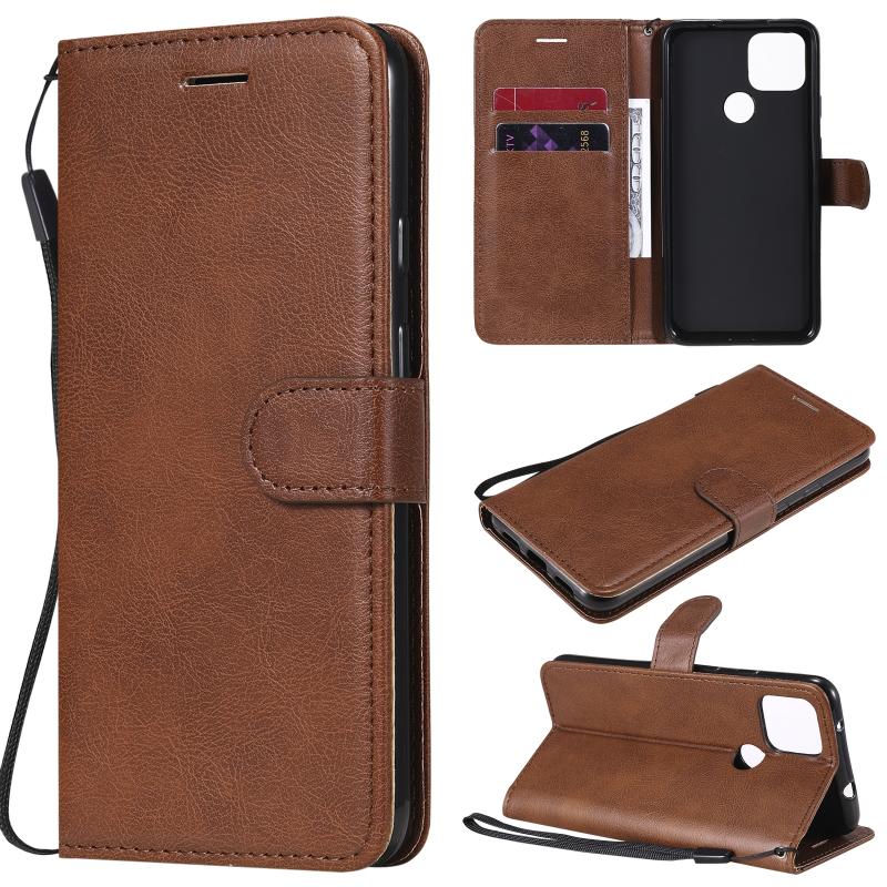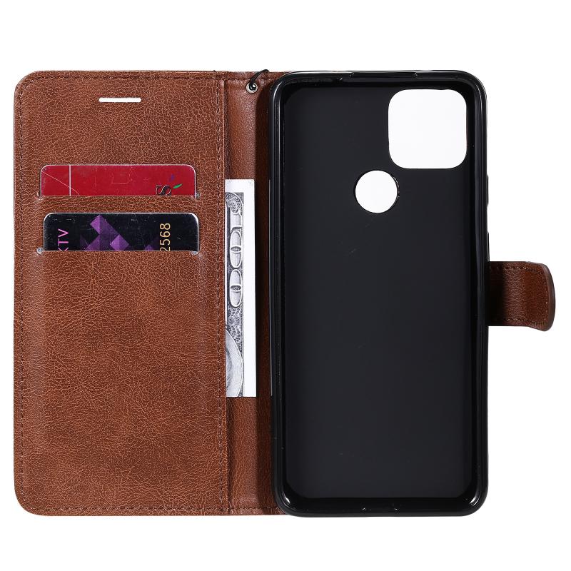 For Google Pixel 5 XL Solid Color Horizontal Flip Protective Leather Case with Holder & Card Slots & Wallet & Photo Frame & Lanyard(Brown)