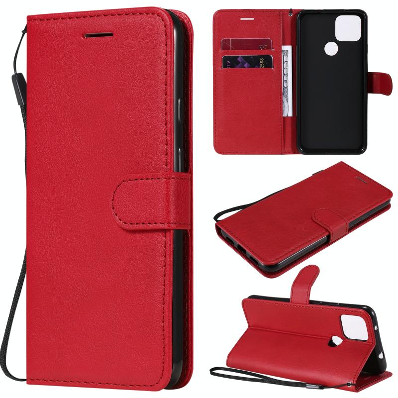 For Google Pixel 5 XL Solid Color Horizontal Flip Protective Leather Case with Holder & Card Slots & Wallet & Photo Frame & Lanyard(Red)