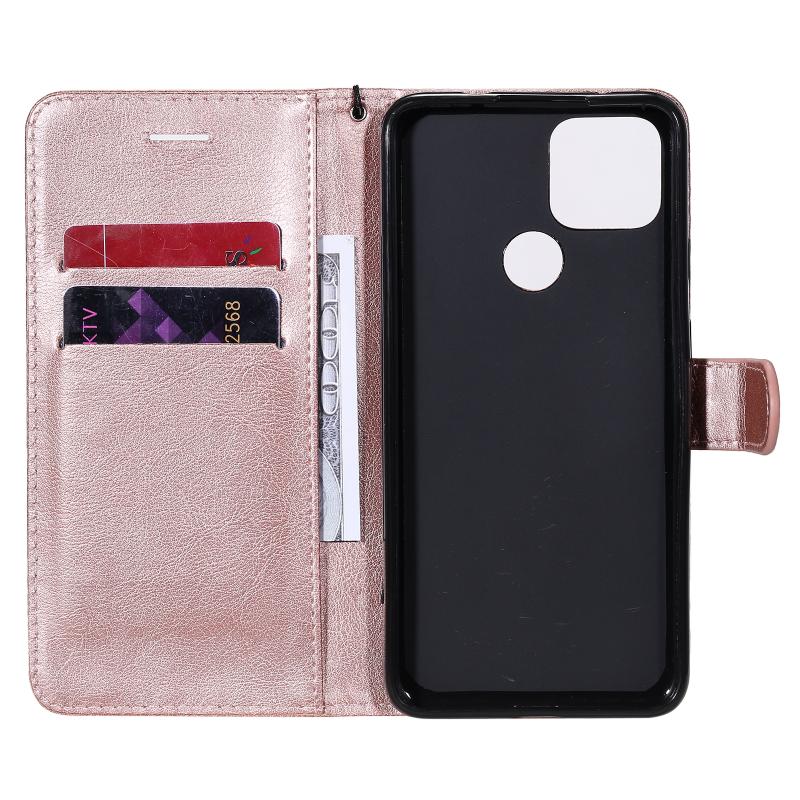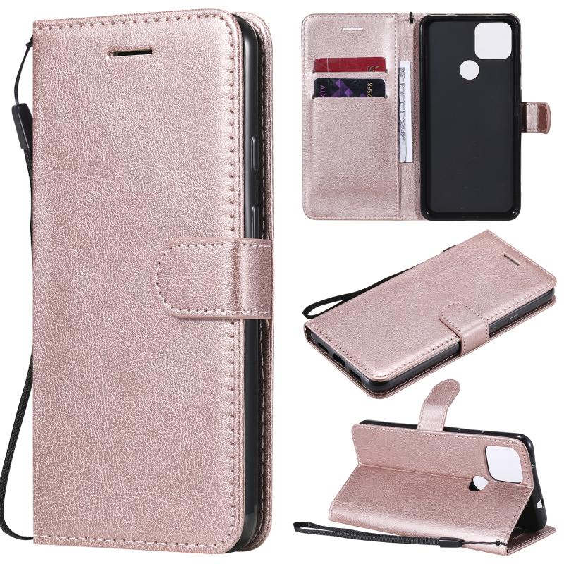 For Google Pixel 5 XL Solid Color Horizontal Flip Protective Leather Case with Holder & Card Slots & Wallet & Photo Frame & Lanyard(Rose Gold)