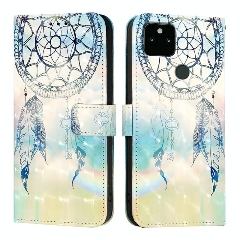Θήκη τηλεφώνου από δέρμα με οριζόντιο άνοιγμα και τρισδιάστατη ζωγραφική για Google Pixel 5a 5G (Όνειρο με Αιολικά Κουδούνια)