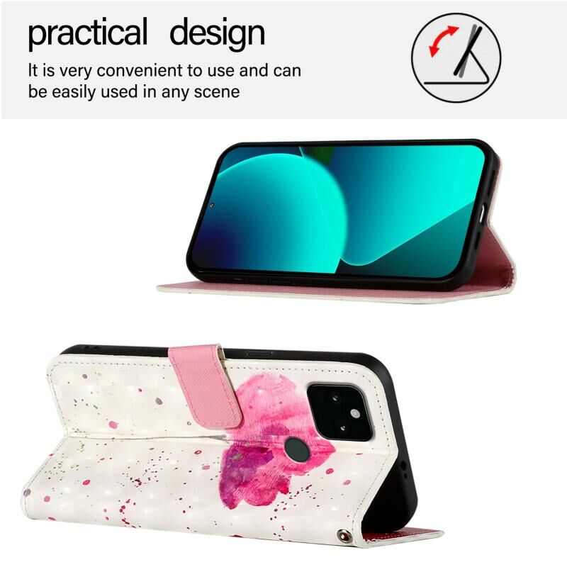 Θήκη τηλεφώνου από δέρμα με οριζόντιο άνοιγμα και τρισδιάστατη ζωγραφική για Google Pixel 5a 5G (Λουλούδι)