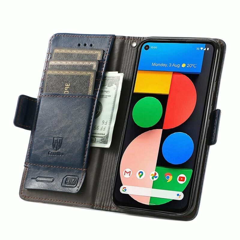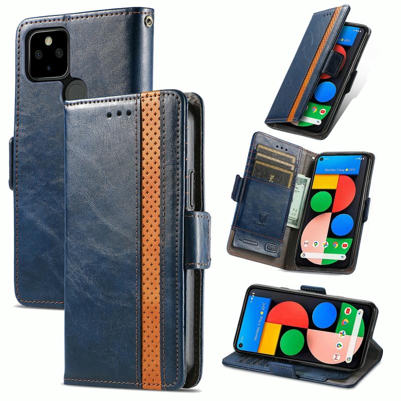 For Google Pixel 5a 5G CaseNeo Business Splicing Dual Magnetic Buckle Horizontal Flip PU Leather Case with Holder & Card Slots & Wallet(Blue)
