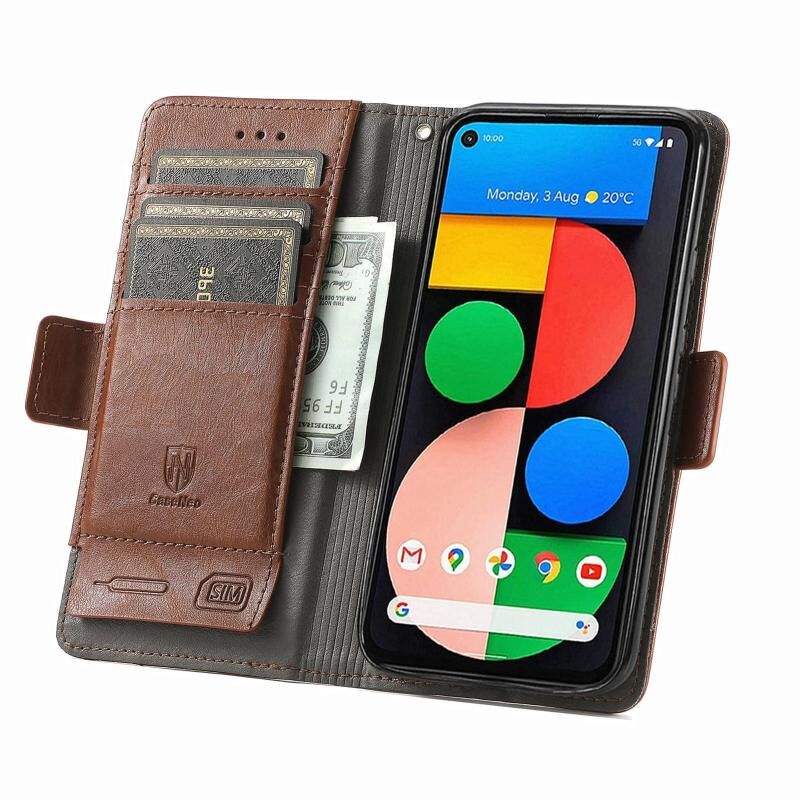 For Google Pixel 5a 5G CaseNeo Business Splicing Dual Magnetic Buckle Horizontal Flip PU Leather Case with Holder & Card Slots & Wallet(Brown)