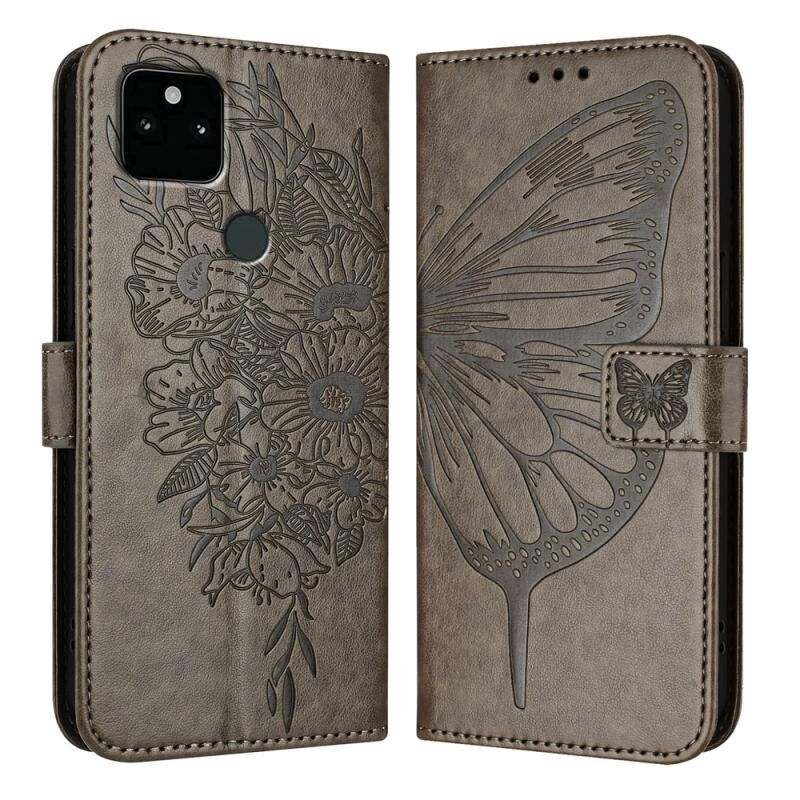 For Google Pixel 5a 5G Embossed Butterfly Leather Phone Case(Grey)