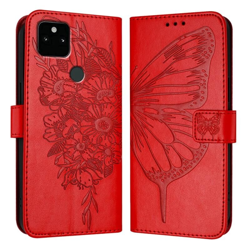 For Google Pixel 5a 5G Embossed Butterfly Leather Phone Case(Red)