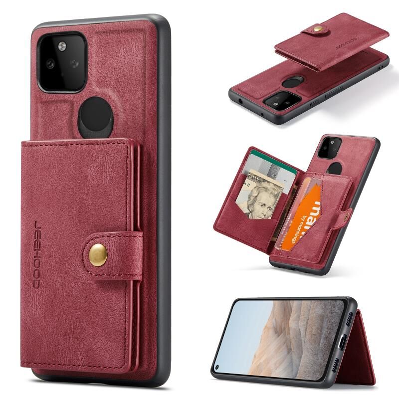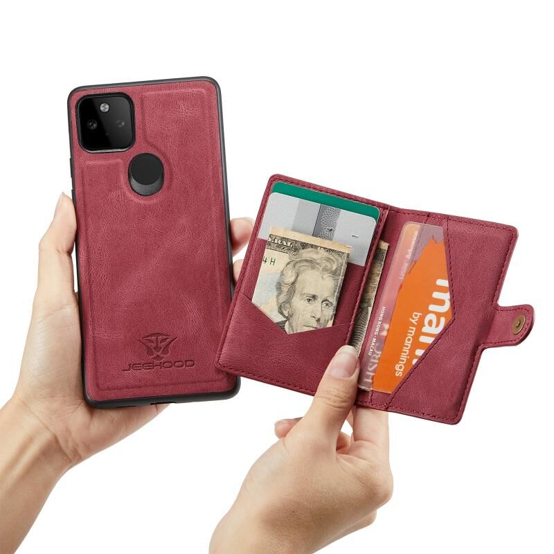 For Google Pixel 5A 5G JEEHOOD Retro Magnetic Detachable Protective Case with Wallet & Card Slot & Holder(Red) (JEEHOOD)