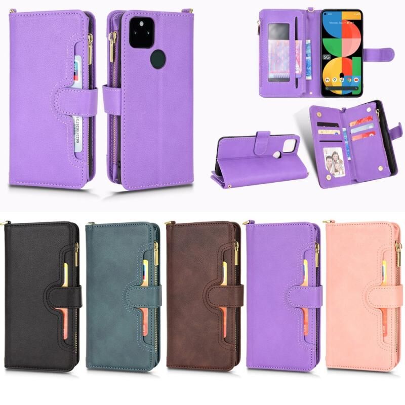 Για το Google Pixel 5a 5G Litchi υφή φερμουάρ δερμάτινη θήκη τηλεφώνου (καφέ)