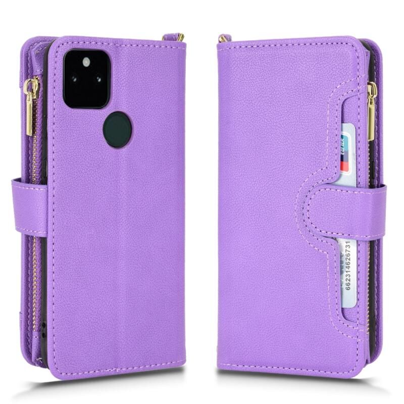 Για το Google Pixel 5a 5G Litchi υφή φερμουάρ δερμάτινη θήκη τηλεφώνου (μωβ)