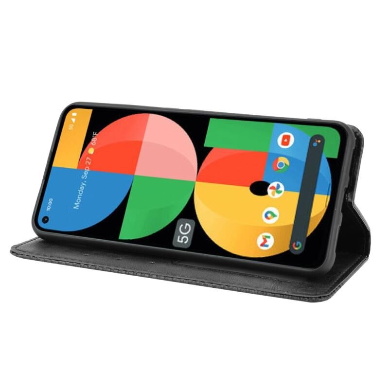 Για το Google Pixel 5a 5G Μαγνητική πόρπη ρετρό μοτίβο οριζόντια Flip δερμάτινη θήκη με κάτοχο & υποδοχή κάρτας & πορτοφόλι (Μαύρο)