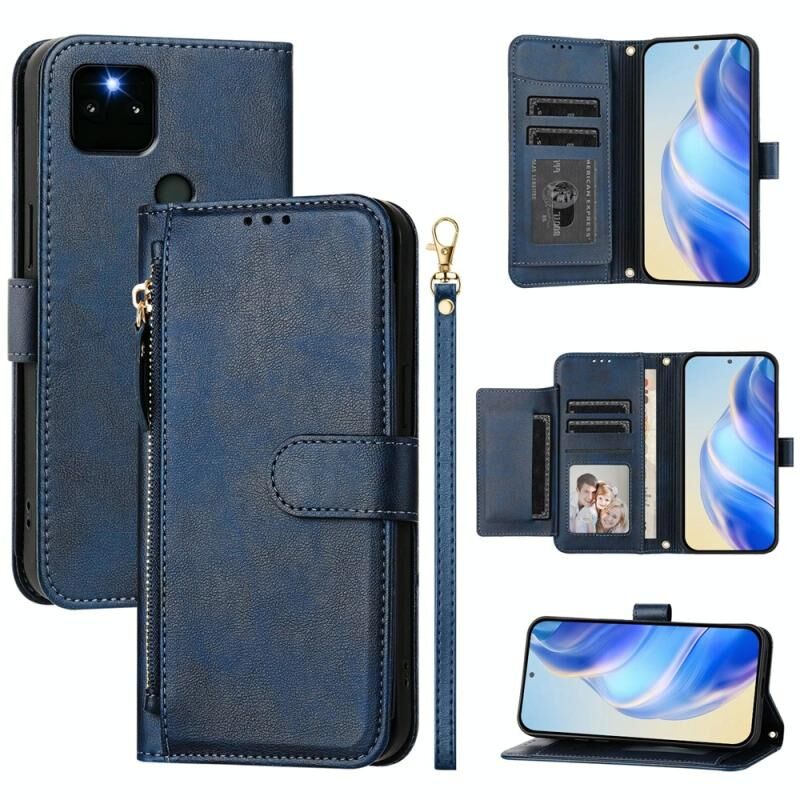Για το Google Pixel 5a 5G Υποδοχές πολλαπλών καρτών φερμουάρ πορτοφόλι δερμάτινη θήκη τηλεφώνου (μπλε)