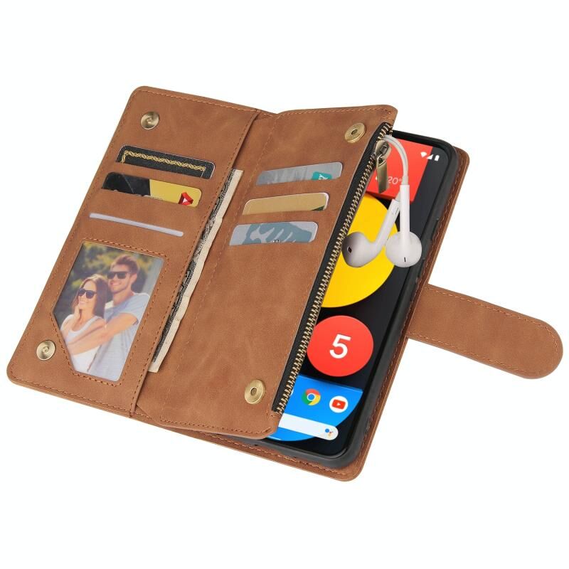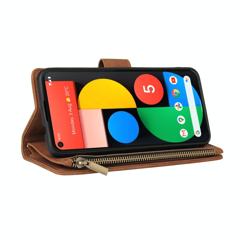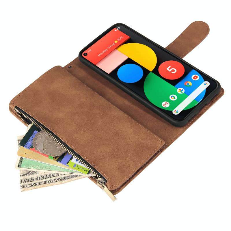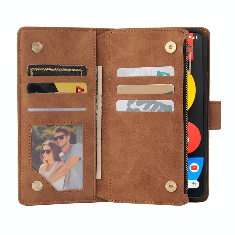 For Google Pixel 5a 5G Multifunctional Phone Leather Case with Card Slot & Holder & Zipper Wallet & Photo Frame(Brown)