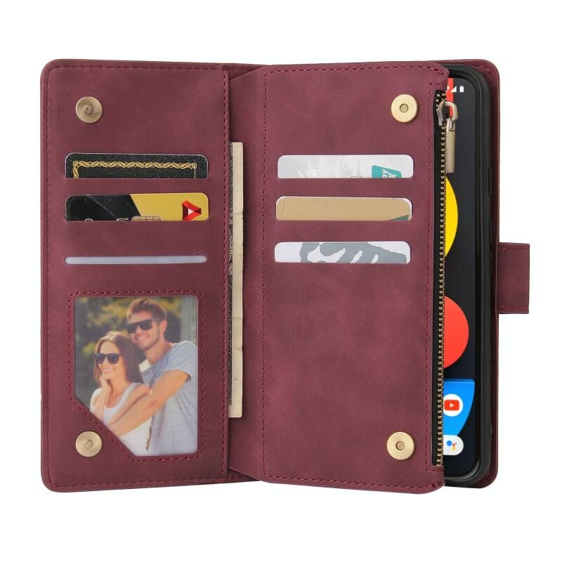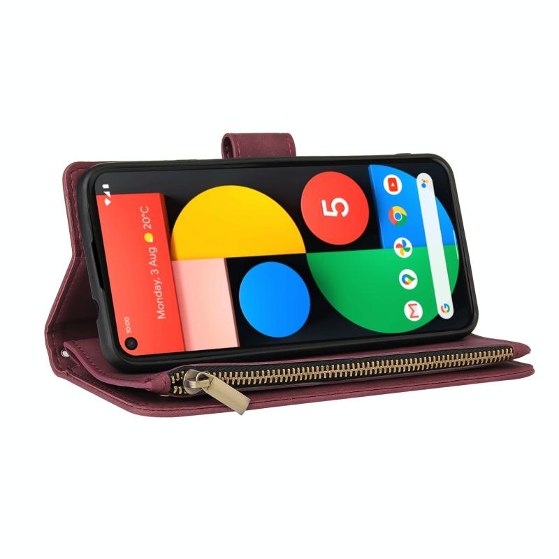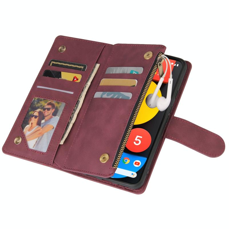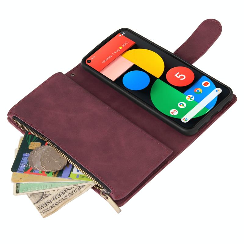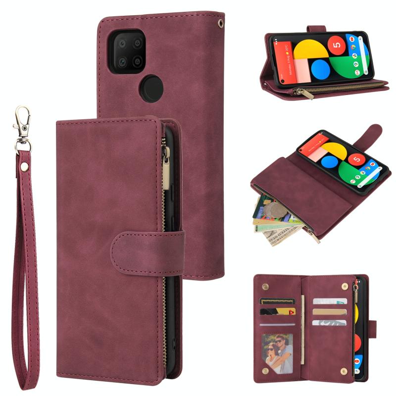 For Google Pixel 5a 5G Multifunctional Phone Leather Case with Card Slot & Holder & Zipper Wallet & Photo Frame(Wine Red)