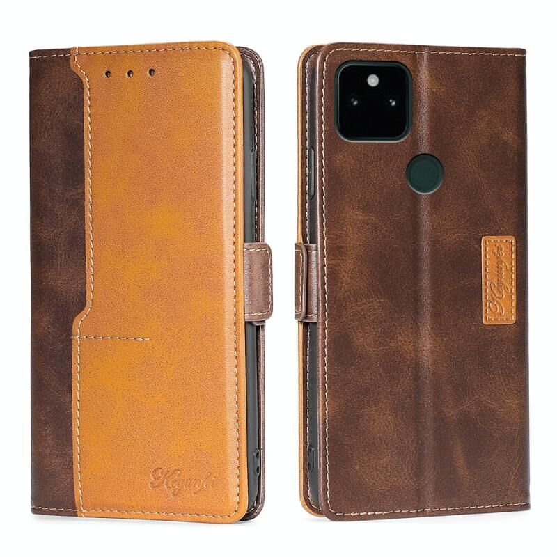 Για το Google Pixel 5a 5G Ρετρό υφή αντίθεση χρώμα πόρπη οριζόντια Flip δέρμα τηλέφωνο υπόθεση με κάτοχο (σκούρο καφέ + χρυσό)
