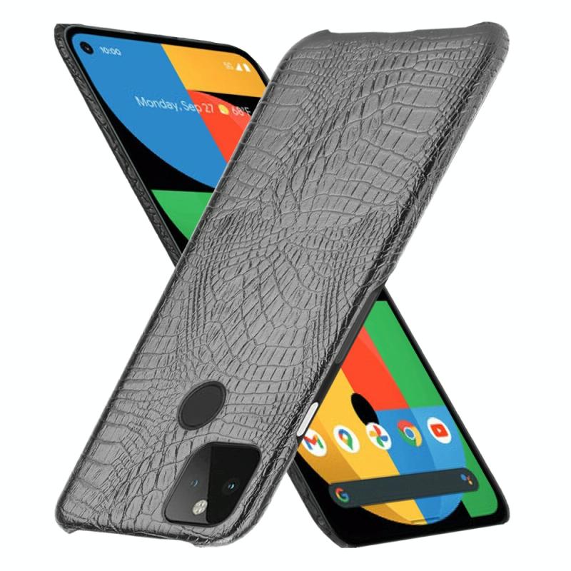 For Google Pixel 5a 5G Shockproof Crocodile Texture PC + PU Case(Black)