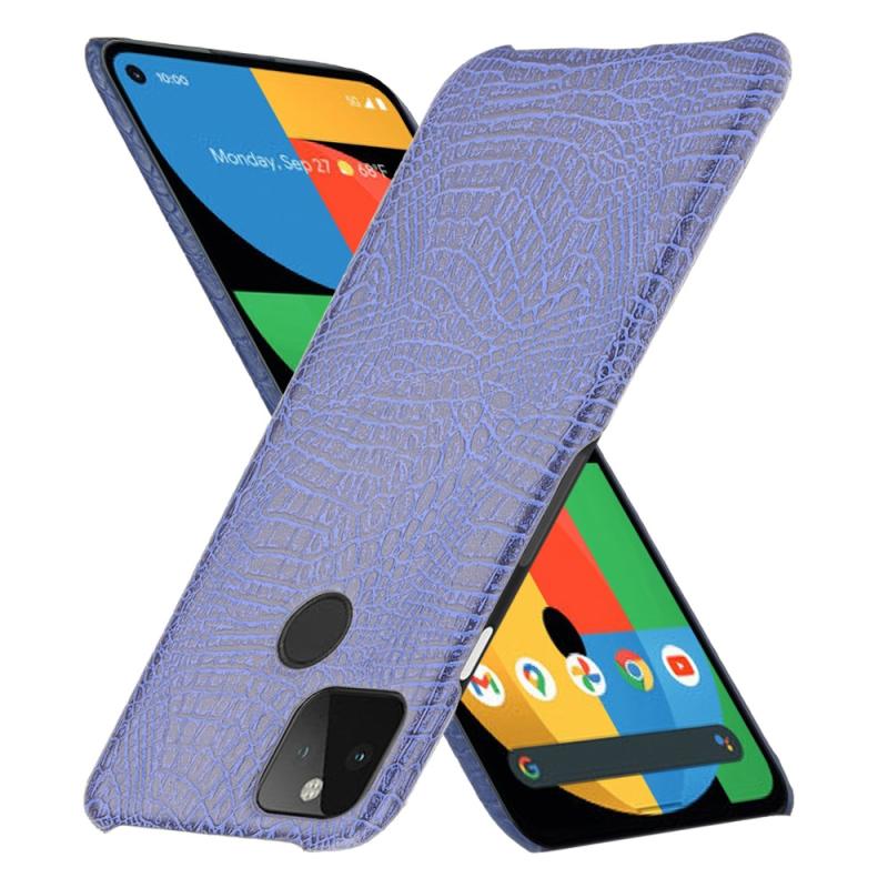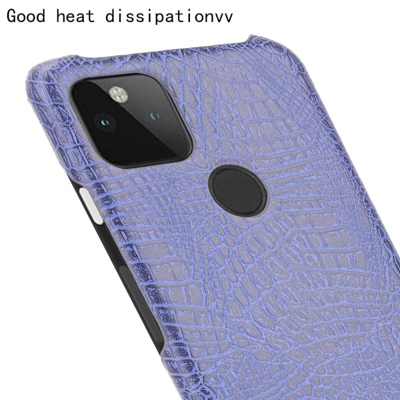 For Google Pixel 5a 5G Shockproof Crocodile Texture PC + PU Case(Blue)