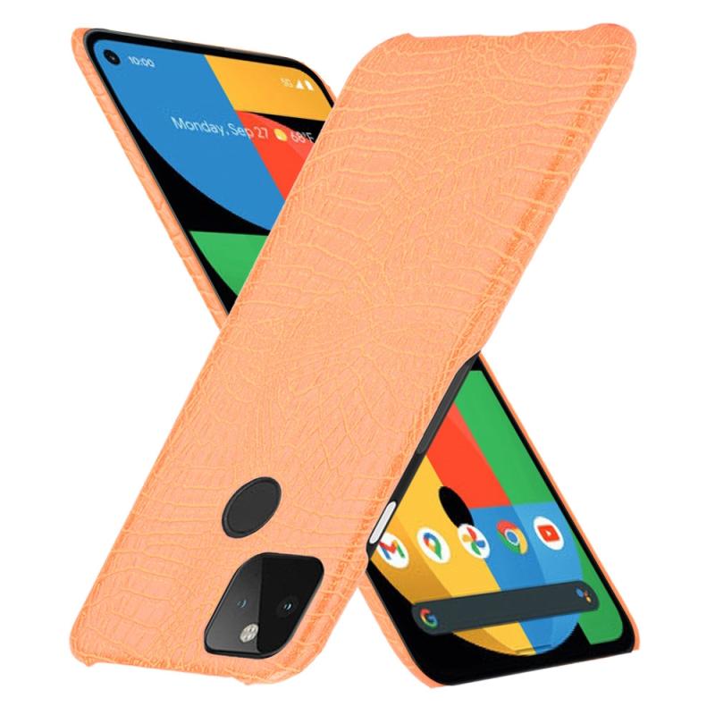 For Google Pixel 5a 5G Shockproof Crocodile Texture PC + PU Case(Orange)