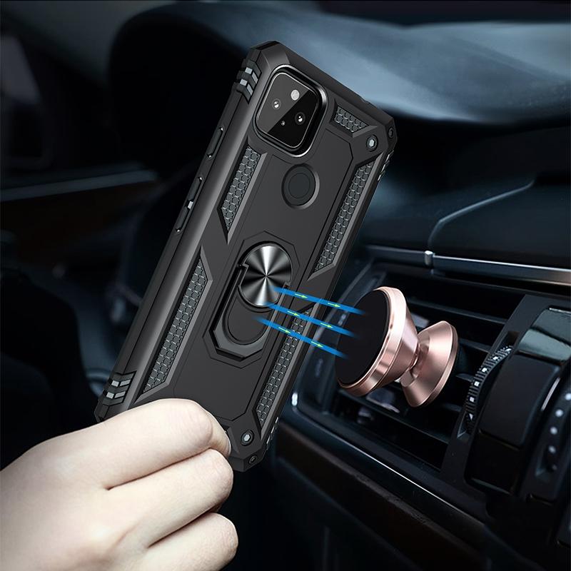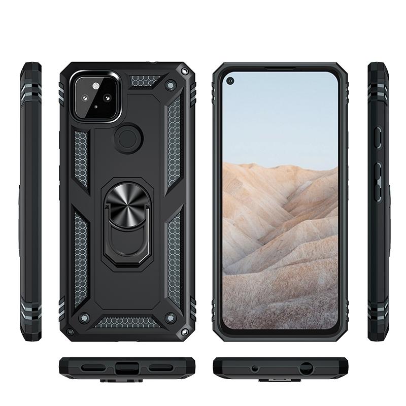 For Google Pixel 5a 5G Shockproof TPU + PC Protective Case with 360 Degree Rotating Holder(Black)