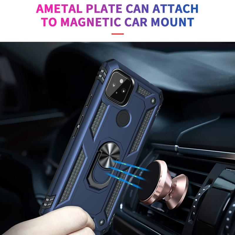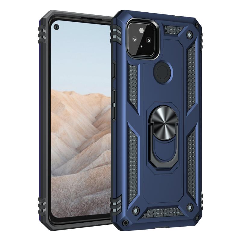 For Google Pixel 5a 5G Shockproof TPU + PC Protective Case with 360 Degree Rotating Holder(Blue)