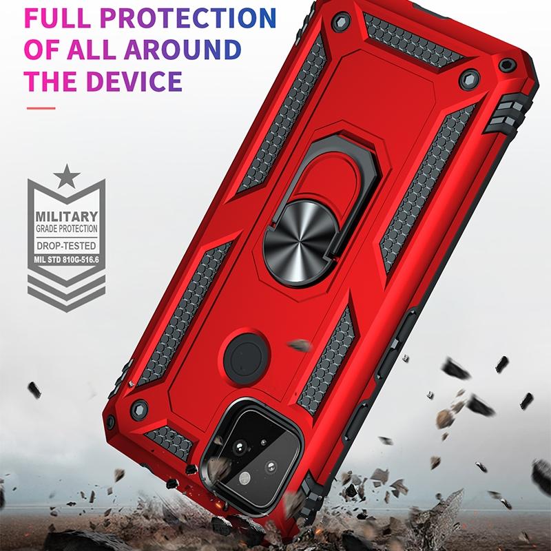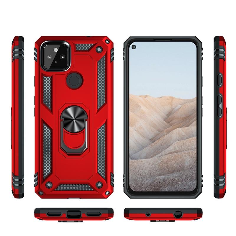 For Google Pixel 5a 5G Shockproof TPU + PC Protective Case with 360 Degree Rotating Holder(Red)