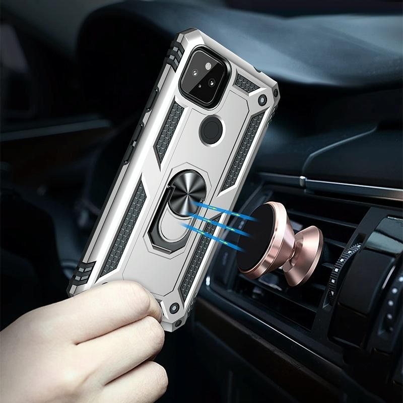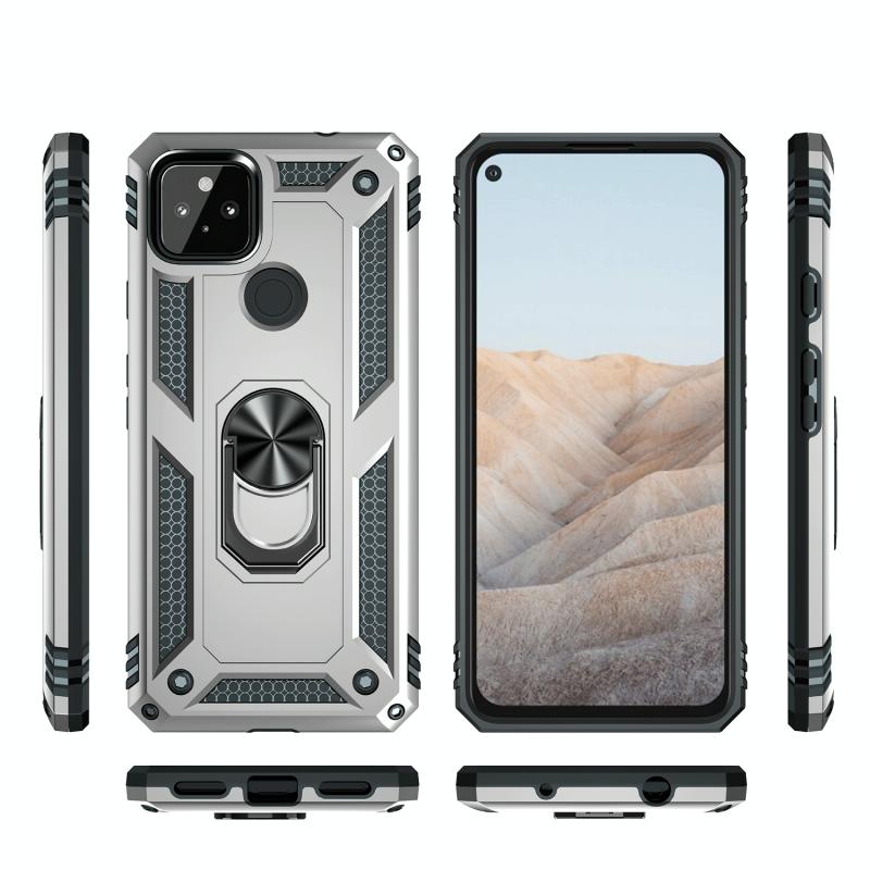 For Google Pixel 5a 5G Shockproof TPU + PC Protective Case with 360 Degree Rotating Holder(Silver)