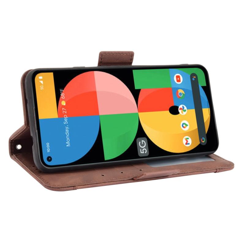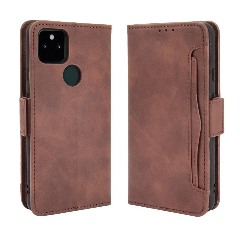 For Google Pixel 5a 5G Skin Feel Calf Pattern Horizontal Flip Leather Case with Holder & Card Slots & Photo Frame(Brown)