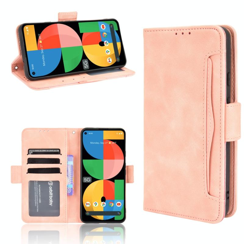 For Google Pixel 5a 5G Skin Feel Calf Pattern Horizontal Flip Leather Case with Holder & Card Slots & Photo Frame(Pink)