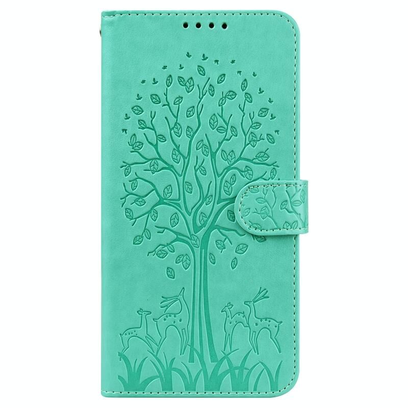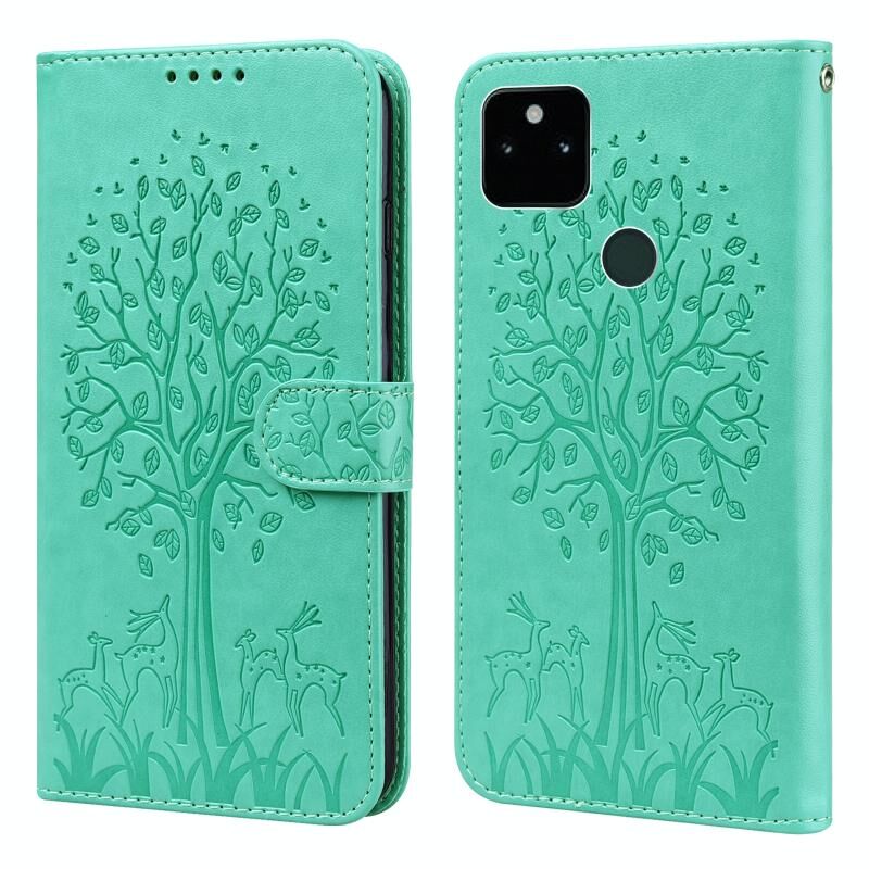 Για το Google Pixel 5a 5G Tree & Deer Pattern Pressed Printing Horizontal Flip Leather Phone Case (πράσινο)