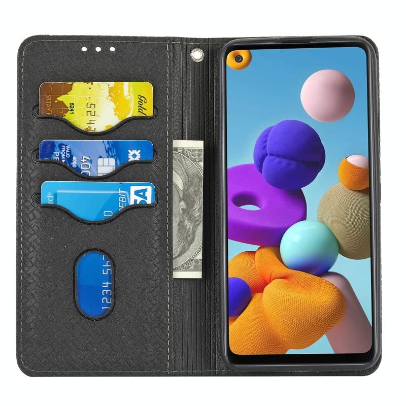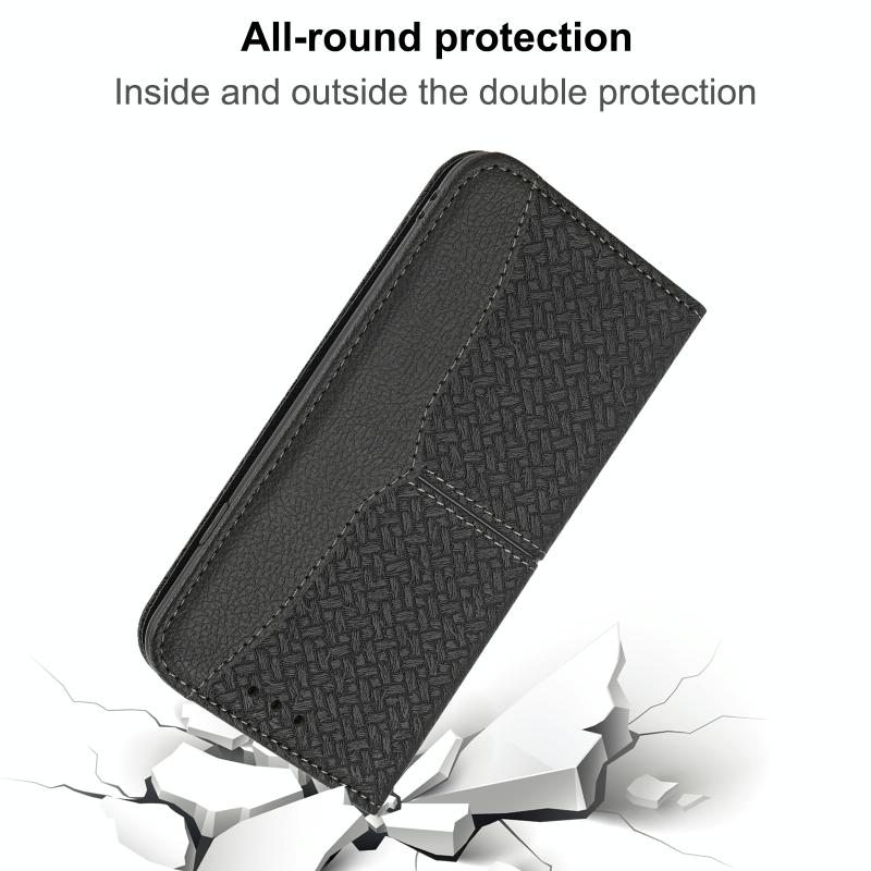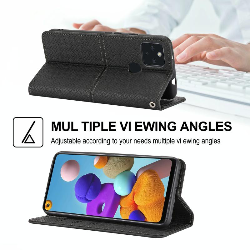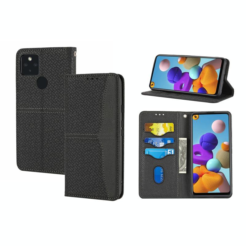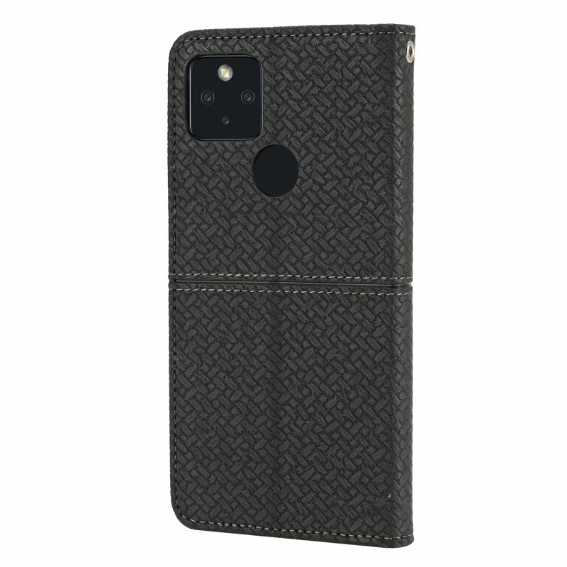 For Google Pixel 5a 5G Woven Texture Stitching Magnetic Horizontal Flip PU Leather Case with Holder & Card Slots & Wallet & Lanyard(Black)