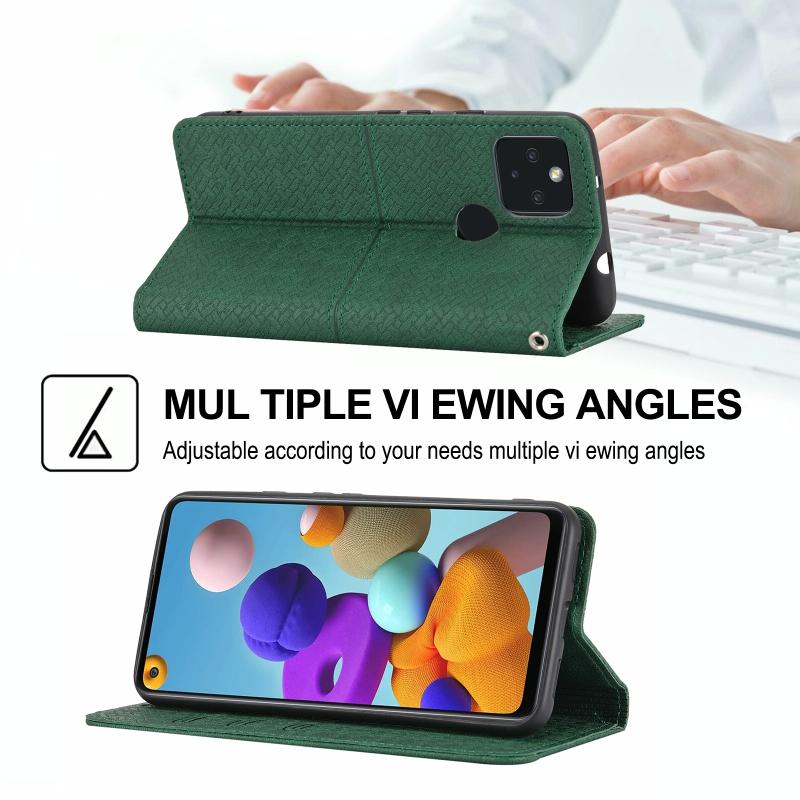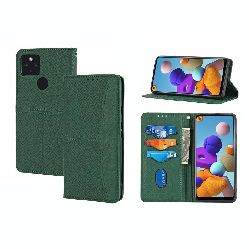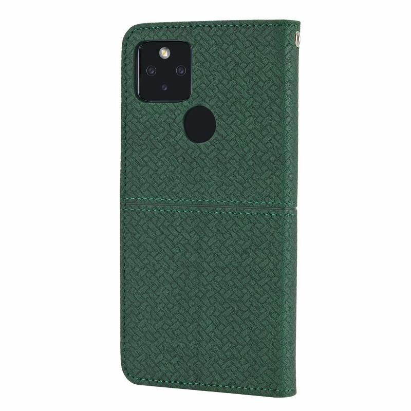 For Google Pixel 5a 5G Woven Texture Stitching Magnetic Horizontal Flip PU Leather Case with Holder & Card Slots & Wallet & Lanyard(Green)