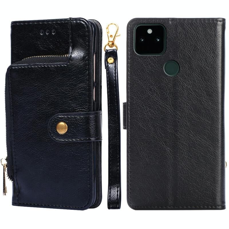 Για το Google Pixel 5a 5G φερμουάρ τσάντα οριζόντια Flip δερμάτινη θήκη τηλεφώνου με θήκη & υποδοχές για κάρτες & κορδόνι (μαύρο)