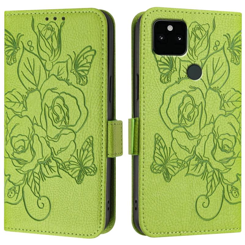 For Google Pixel 5a Embossed Rose RFID Anti-theft Leather Phone Case(Green)