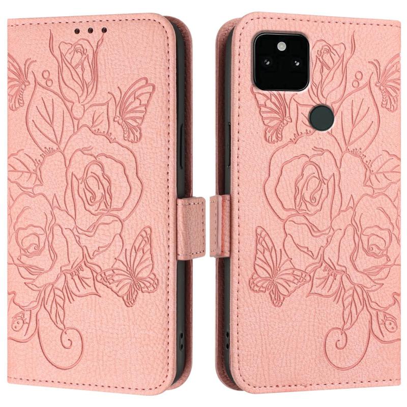 For Google Pixel 5a Embossed Rose RFID Anti-theft Leather Phone Case(Pink)