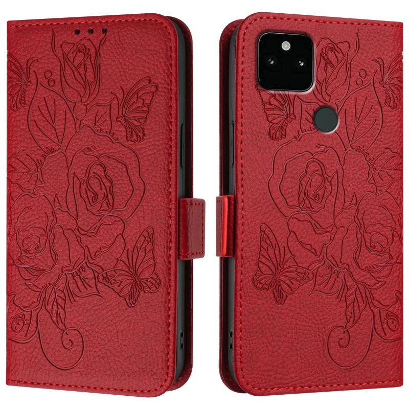 For Google Pixel 5a Embossed Rose RFID Anti-theft Leather Phone Case(Red)